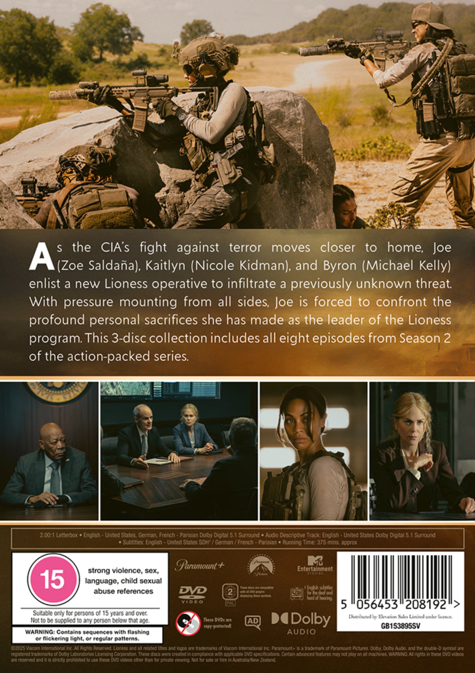 As the CIA’s fight against terror moves closer to home, Joe (Zoe Saldaña), Kaitlyn (Nicole Kidman), and Byron (Michael Kelly) enlist a new Lioness operative to infiltrate a previously unknown threat. With pressure mounting from all sides, Joe is forced to confront the profound personal sacrifices she has made as the leader of the Lioness program. This 3-disc collection includes all eight episodes from Season 2 of the action-packed series.