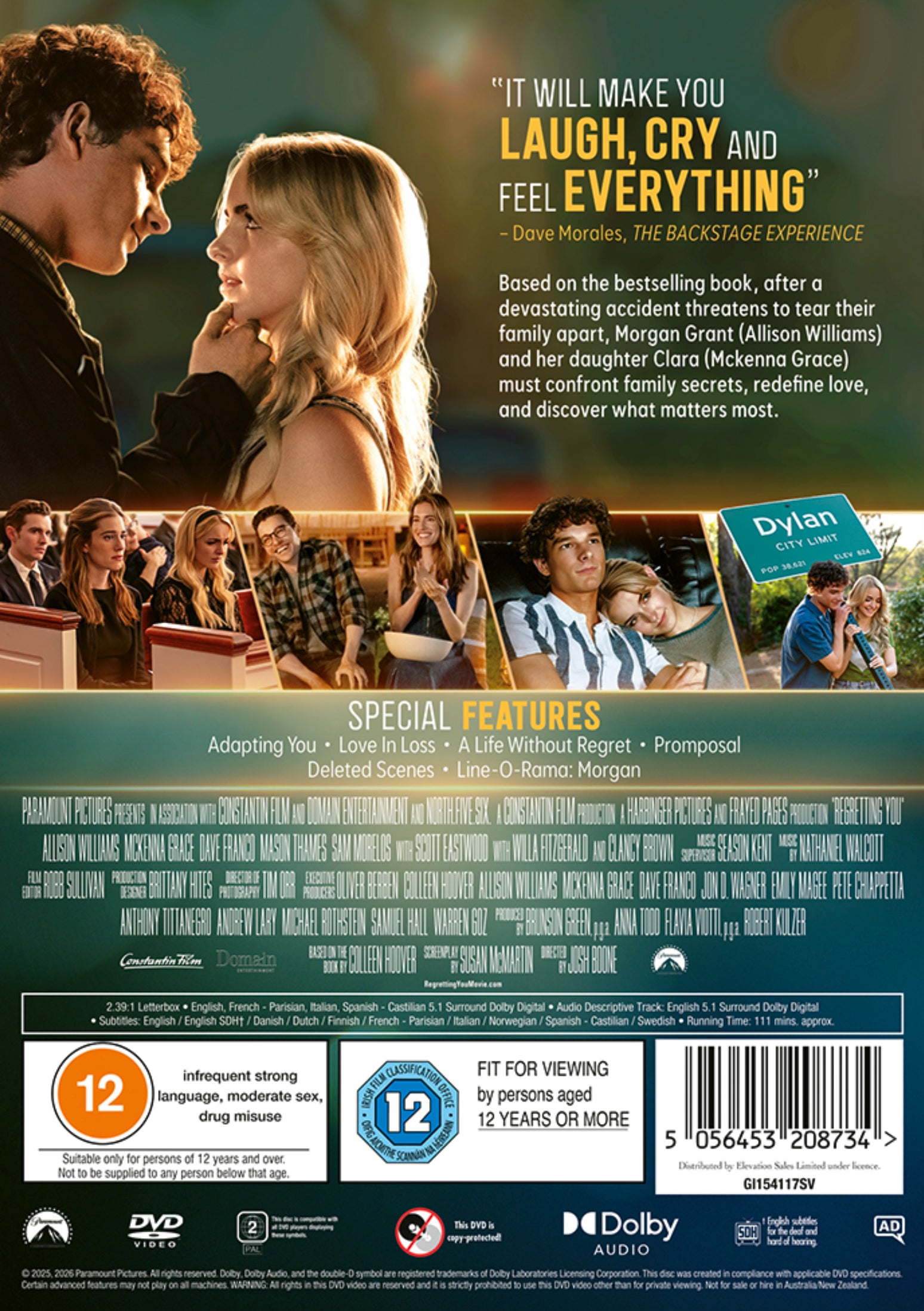 Based on the bestselling book, REGRETTING YOU introduces audiences to Morgan Grant (Allison Williams) and her daughter Clara (Mckenna Grace) as they explore what’s left behind after a devastating accident reveals a shocking betrayal and forces them to confront family secrets, redefine love, and rediscover each other. REGRETTING YOU is a story of growth, resilience, and self-discovery in the aftermath of tragedy, also starring Dave Franco and Mason Thames with Scott Eastwood and Willa Fitzgerald.