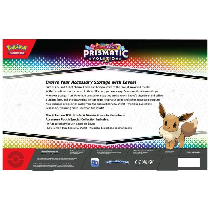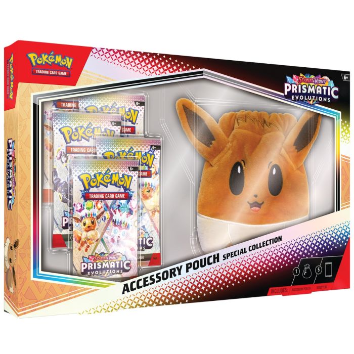 The Pokémon TCG: Scarlet & Violet—Prismatic Evolutions Accessory Pouch Special Collection includes: