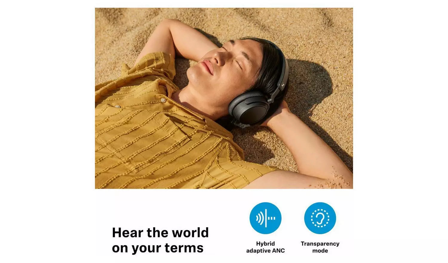 In the box: ACCENTUM Plus headphone, Carry case, USB-C charging cable, Audio cable 3.5mm and 2.5mm jacks.